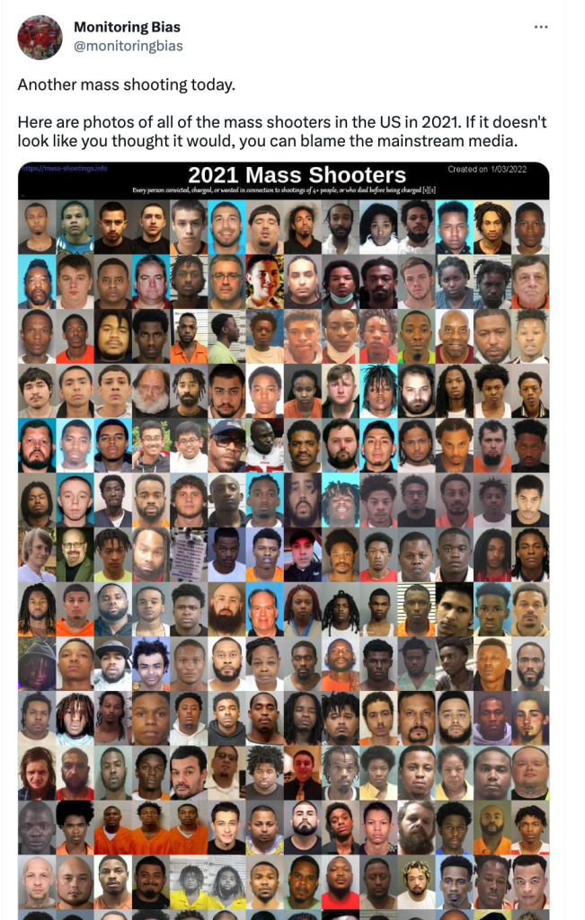 Take this example, It says he was involved in a domestic disturbance, shot AT several people, and then fled on foot, he was arrested later. No one was killed or seriously injured, contrary to what they claim. Further, the link they provide is broken, you have to google his name to find the case, and what actually happened. His case was not a mass shooting, didn’t even hurt anyone, and yet he is put up on the internet as a mass shooter. Further, from over 600 claimed mass shootings that they reference, his photo is cherry-picked out, because he is black. This is just one example of many on this site.